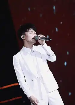 In 2018, Zhou performed over 10 songs for various films and TV series, including the Chinese promotional song for the Academy Award-winning film The Shape of Water.[27] In May and June, Zhou embarked on his first concert tour, the Deep Space Tour, in Shanghai, Wuhan, and Chengdu.[28] He won the Most Improved Artist of the ERC Chinese Top Ten Awards and the Best New Artist of the Global Chinese Music Chart Awards.[29] In November, Zhou participated in the show Super–Vocal, where his performance of classic songs including "Time to Say Goodbye", "Memory", "Think of Me", and "The Lonely Goatherd" received extremely high praise from industry professionals.[30][31] He participated in The Masked Singer again, this time using his Bel canto skills and versatile vocals to mislead the guessing panel.[32]