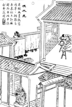 Zhou is briefly mentioned in "Feng the Carpenter" (冯木匠),[22] a short story implicitly criticising the Qing government by Pu Songling in Strange Tales from a Chinese Studio.[23] The tale makes reference to the "remodeling of a former prince's residence into an office for various government ministries". In reality, Zhou had indeed commissioned the construction of a provincial yamen on the abandoned premises of the Prince of Jinan's former residence.[24][25] According to Sondergrad (2014), "Pu inserts him (Zhou) obliquely into his story knowing that Zhou's reputation would not be tarnished by a fiction, while the mere mention of his name would help to keep his legacy alive."[23]