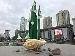 Zhujiajian (朱家尖) is the fifth largest island of the archipelago and a newly developed seaside resort with intriguing seascapes, unmarred beaches, dense woods, sheer rock cliffs, hills for hiking, extraordinary seafood and displays of fishermen folk culture. It is home to the Zhoushan International Sand Sculpture Festival, which is held on the Nansha Beach, one of the five consecutive beaches, at the turn of summer and autumn every year.[24] Daqing Mountain is the best location to get the incomparable view of southern Zhoushan Islands and the continental China (Chuanshan Peninsula) on clear days. It is also an ideal place for extreme sports, such as car racing, mountain cycling, gliding, rock climbing and bungee jumping. Baishan Mountain features huge natural rocks of different shapes, Guanyin carving on the cliff, and the Putuo Impression show, directed by Zhang Yimou. Zhujiajian is also the site for Mount Putuo Buddhist Academy. Wushitang (Dark Stone Beach) is the 500-meter (1,600 ft) beach consisting of numerous dark colored pebbles.