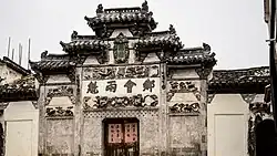 The architectural composition of Zhuge Village is very rare and peculiar. Buildings are arranged in an orderly fashion, according to the bagua principles of feng shui, earning it the title of Zhuge Bagua Village.[4] The buildings are imposing and majestic structures. The unique skyline of the village was designed to commemorate Zhuge Liang by a descendant during the Southern Song dynasty, Zhuge Dashi (諸葛大師).