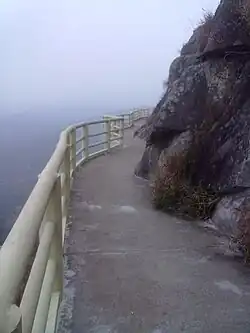 Shigen Mountain (石根山) is the most famous mountain in Zhusha Town with the height of 990 meters above sea level. It is the border along Guangdong and Guangxi province. The whole Zhusha town can be seen on the top of Shigen Mountain. There is concrete plank road built on the cliffs of the mid-levels.
