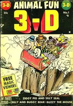 - ^ Though unhyphenated on the cover logo, the duo's namesake comic is titled Ziggy Pig-Silly Seal Comics according to its 1970s copyright renewal, as per The Catalog of Copyright Renewal Records (1977) by the United States Copyright Office (Kessinger Publishing, 2007, ISBN 1-4325-1250-1, ISBN 978-1-4325-1250-7)