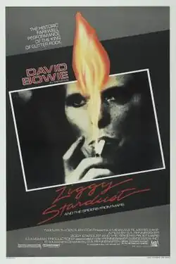 Ziggy Stardust and the Spiders from Mars (sometimes called Bowie 1973) is a 1979 British documentary/concert film by D. A. Pennebaker. It features English singer-songwriter David Bowie and his backing group the Spiders from Mars performing at the Hammersmith Odeon in London on 3 July 1973, the final date of his Ziggy Stardust Tour.[2] At this show, Bowie made the sudden surprise announcement that the show would be "the last show that we'll ever do", later understood to mean that he was retiring his Ziggy Stardust persona.[3][4]