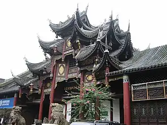 Now a historic teahouse built by the Sichuan-based salt merchants originally served as a guild hall for salt merchants. Originally called the Wang Sanwei Lineage Hall - it's now called the Wangye Miao Teahouse. The Wangye Miao Teahouse was popular during the height of the salt trade and still stands along a bend in the Fuxi River - which runs through the center of Zigong. The structure has classic Chinese architecture and still operates today. The teahouse is located next to the river, on Binjiang Lu street. The teahouse is in fact part of the Zigong Salt Museum and is used to generate funds for the museum. However, the original purpose of the teahouse was the assembly hall for shipping merchants and was called Wangye Miao Temple. For its origin please refer to "Merchants Assembly Halls" below.