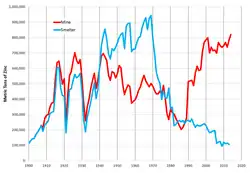 - ^ World Mineral Production 2007-11, British Geological Survey, 2013.