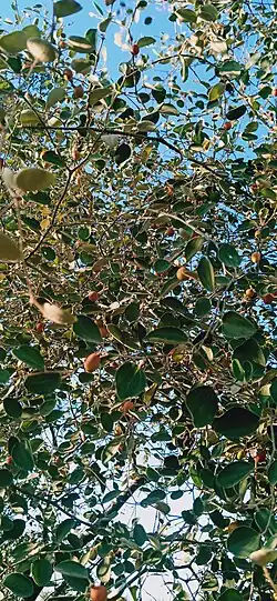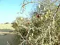 Ziziphus nummularia, commonly known as wild jujube or jharberi in Hindi,[2] is a species of Ziziphus native to the Thar Desert of western India and southeastern Pakistan, south Iran, Afghanistan, Lebanon and Zimbabwe. Ziziphus nummularia is a shrub up to 6 metres (20 ft) or higher, branching to form a thicket. The leaves are rounded like those of Ziziphus jujuba but differ from those in having a pubescence on the adaxial surface. The plant is commonly found in arid areas, hills, plains, and agricultural fields.