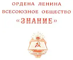 The All-Union Society "Znanie" (All-Union Society for the Dissemination of Political and Scientific Knowledge) was an educational and propaganda organization in the Soviet Union and Russia that arose in 1947.[1] Its original name was the "All-Union Society for the Dissemination of Political and Scientific Knowledge".[1] Its first president was Sergei Vavilov.[2]