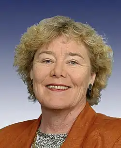 Susan Ellen "Zoe" Lofgren (/ˈzoʊ ˈlɒfɡrɪn/ ZOH LOF-grin;[1][2] born December 21, 1947) is an American politician and lawyer serving as a U.S. representative from California. A member of the Democratic Party, Lofgren is in her 15th term in Congress, having been first elected in 1994. Lofgren has long served on the House Judiciary Committee, and chaired the House Administration Committee in the 116th and 117th Congresses.