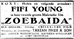 ![]() Newspaper ad, Medan; an advertisement for Tarzan Finds a Son! is underneath | |