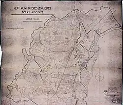 The term Zone of Interest (German: Interessengebiet) was a term used by the occupying Nazi forces to describe the area around the Auschwitz concentration camp complex reserved for the Schutzstaffel (SS), subject to the administration of the main camp. The zone was created on the land confiscated around the camp, as a 40-square-kilometer (4,000 ha; 15 sq mi; 9,900-acre) zone patrolled by the SS, Gestapo, and local police.[1][2]