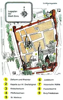 - Kultur- und Heimatfreunde Stadt Zons e.V. (in German: website of the friends of culture and local history of Zons)