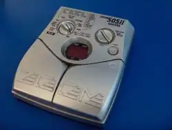 It has a solid steel dark green body with an opto-based pedal on the right and red LED display on the top left. It uses the Variable Architecture Modeling System (V.A.M.S) technology.[27] In general, there are three main internal modules: for drive, for modulation and for delay. The unit allows a high level of distortion customization by using specialized software. It also allows the use of external distortion. The technology used in the unit does not allow full reordering of the effects but allows some of modulation effects like wah and phaser to be connected before or after the drive module. The drive module implements dynamic related effects like compressor, overdrive, distortion and fuzz. After the drive module, the noise gate module called ZNR (ZOOM Noise Reduction) is connected, followed by a parametric equalizer (presence, treble, middle, bass). The amp simulation module is connected next and allows various types of guitar amplifier simulations. The modulation module implements effects like wah, phaser, chorus, ring modulator, tremolo, vibrato, flanger and pitch shifter. The delay module is used to implement delay and reverb effects. Effects that require high processing power use modulation and delay module together. One such effect is the jam play effect, which allows, for example, a guitar player to play a rhythm guitar part and then play a solo part over it. The unit design is oriented toward ease of use by providing more knobs than usually found on such units, thus making the unit look more like a chain of effect boxes instead of the typical effect processor with a "few knobs many functions" type design. The unit has mature MIDI capabilities, allowing both control from an external sequencer or using the unit as a MIDI controller. The MIDI OUT can be configured to act as MIDI THRU.