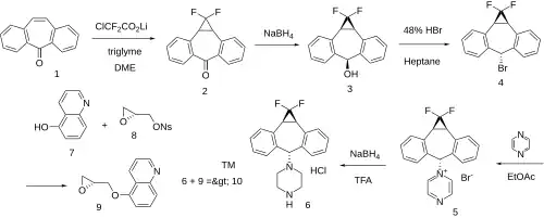 - ^ Astleford, Bret Anthony (2003) "Process for preparing a 10,11-methanodibenzosuberane derivative" U.S. patent 6,570,016