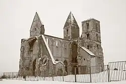 An earthquake in 1763 ruined the church once again. It was not reconstructed after this horrific event. Settlers from Germany, who came to live in the abandoned village after the Turkish occupation, took the stones from the church and used them for building houses and fences. Many of the church's stones are still present in the walls of older houses.[2]