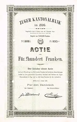 Zuger Kantonalbank is a cantonal bank based in Switzerland. Its head office is situated in Zug, Switzerland. Founded in 1892, Zuger Kantonalbank is a universal bank, providing retail and corporate banking products mainly to the canton residents. The bank has full state guarantee of its liabilities.[1]