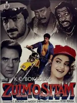 Zulm-O-Sitam is a 1998 Indian Hindi-language action film directed by K. C. Bokadia.[1] The film stars Dharmendra, Shatrughan Sinha, Jaya Prada, Arjun, Madhoo, Mukesh Khanna and Danny Denzongpa in the lead roles. It marked Bokadia's third collaboration with Dharmendra after Kundan (1993) and Maidan-E-Jung (1995) and fifth with Jaya, who apart from Kundan and Maidan-E-Jung, had also starred in Aaj Ka Arjun (1990), Tyagi (1992) and Insaniyat Ke Devta (1993) which were directed by Bokadia.