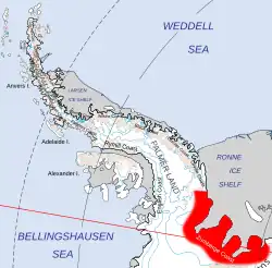Zumberge Coast is that portion of the southeast coast of Ellsworth Land between Cape Zumberge and the south entrance point to Hercules Inlet. Overlooking the west part of Ronne Ice Shelf, this coast was mapped by United States Geological Survey (USGS) from U.S. Navy aerial photographs taken 1961-66 and Landsat imagery taken 1973–74. Named by Advisory Committee on Antarctic Names (US-ACAN) in 1986 after James Zumberge (1923-92),[1] American geologist and glaciologist who directed research on Ross Ice Shelf, 1957–64; Chairman, Committee on Polar Research (later Polar Research Board) of NAS, 1972–76; President, Scientific Committee on Antarctic Research (SCAR), 1982–86; President, University of Southern California, 1980–91.