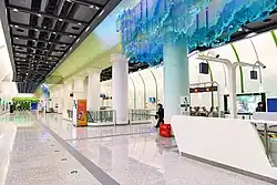 The total construction area of the station is 20,384 square metres and the total length is 282.3 metres.[5] The station has one island platform.