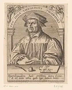 Wilfried Kettler emphasizes that the Zurich Bible of 1531 was a "joint work of the Prophezei", a "fruit" of the ongoing editing of the biblical books in this institution. He recognizes the work processes of the Prophezei in Zwingli's exegetical writings: first the translation of a Hebrew formulation into Latin, then a look at the Septuagint, and finally the theological discussion about it.[16] Accordingly, all eight teachers who belonged to this circle for a long or short time were involved in the Zurich Bible of 1531 - apart from Zwingli and Jud, the early deceased Hebraist Jakob Ceporin, Konrad Pellikan, Kaspar Megander, Johann Jakob Ammann, Rudolf Collin and Oswald Myconius. It is only possible to attribute certain biblical writings to one of these persons in the case of the Apocrypha, which Leo Jud translated alone.[17] Walter Schenker assumes that Zwingli gave "the general instructions" for the production of the Zurich Bible and that the exegetical implementation was a joint effort by the prophets and the printer for the regional lexeme alternatives to the Luther Bible.[18]