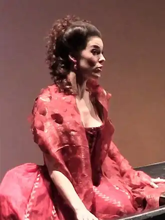 Her repertoire also includes Donna Anna in Mozart's Don Giovanni, the title role of Donizetti's Anna Bolena, Oscar in Verdi's Un ballo in maschera, Ines in Meyerbeer's L'Africaine, Micaëla in Bizet's Carmen, and the title role in Henri Sauguet's Les caprices de Marianne. She also works as a concert singer.[1]