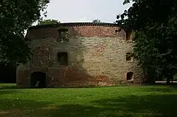 The Zwinger in the Westphalian city of Münster is part of the old city fortifications from the Early Modern Period. In the Nazi era it was both a jail and a Gestapo place of execution and was heavily damaged by allied air raids. Since its conversion to a memorial the Zwinger has belonged to the Münster City Museum (Stadtmuseum Münster) and is home to the sculpture Das gegenläufige Konzert.