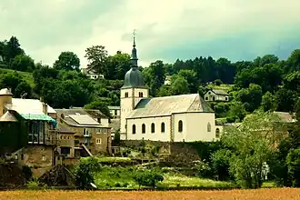 De kerk is omringd door een ommuurd kerkhof. Aan de achterzijde van de kerk stroomt de Semois. In het dorp staat ook de vroegere pastorie uit 1790, gebouwd in classicistische stijl.[1]