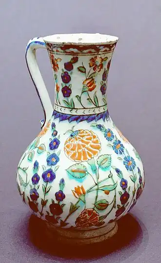 Halverwege de 16e eeuw worden naast wit en blauw ook turquoise, mauve en paars gebruikt in de beschildering. Ook worden de motieven veelzijdiger; zo komen vanaf dan ook menselijke en dierlijke figuren voor. Favoriet blijven bloem-motieven. De İznik-keramiek bereikte haar hoogtepunt tijdens sultan Süleyman de Grote, onder andere door toedoen van de meesterschilder Kara Memi. Bekende motieven zijn hyacinten, tulpen, anjers, rozen, vlechtwerken van bloemen, geometrische patronen en in Chinese stijl getekende wolken.
