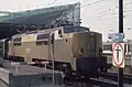 Reed tussen 1999 en 2002 in Vos Logistics-huisstijl (zwart met oranje band), in 2010 eigendom Stichting Klassieke Locomotieven. Niet rijvaardig, kleurstelling ACTS-paarsblauw met gele band (ACTS-kleurstelling 2003). Standplaats Amersfoort. | ![]() | |