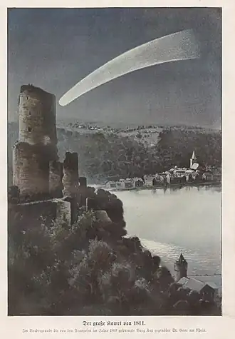 - 25 - Eerste waarneming door Honoré Flaugergues van de Grote Komeet van 1811. Deze zal van augustus tot einde jaar met het blote oog goed zichtbaar zijn. De buitengewone wijnoogst van dit jaar zal voortaan worden aangeduid als Kometenwijn.