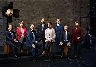 | Guy Parmelin | SVP/UDC | Vicebondspresident in 2020, hoofd van het Federaal Departement van Economische Zaken, Vorming en Onderzoek | ||