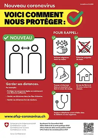 - ↑ La Suisse en état de "situation extraordinaire" jusqu'au 19 avril, RTS, 16 maart 2020. Gearchiveerd op 7 augustus 2020.