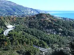 De A8 doorkruist voornamelijk bergachtig terrein op korte afstand van de Middellandse Zee.