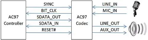 De AC97 bestaat uit een codec die via een AC-link (5 datalijnen) verbonden is met een digitale controller. Met behulp van de codec worden de analoge signalen (audio) omgezet naar digitale signalen (gecodeerd) of omgekeerd (gedecodeerd). De AC-link bestaat uit een synchronisatielijn, een kloklijn, een resetlijn en twee lijnen voor de data van en naar de codec.