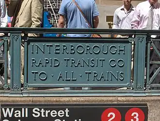 De A Division, ook bekend als de IRT Division, is een divisie van de metro van New York, de instaat voor de uitbating van de metrolijnen met de nummers 1, 2, 3, 4, 5, 6 en 7 en de 42nd Street Shuttle. Deze lijnen en diensten werden geƫxploiteerd door de Interborough Rapid Transit Company voor de overname door het stedelijk vervoersbedrijf in 1940. De huidige nummers 1 tot 7 van de metrolijnen van de A Division werden in 1948 vastgelegd. De pictogrammen van de metrolijnen, en de keuze van de achtergrondkleuren werd daarbij bepaald door het metrolijntraject dat de desbetreffende lijnen gebruiken voor hun traject doorheen de borough Manhattan. Lijn 1, 2 en 3, aangeduid met rode achtergrond in het pictogram van de lijn en op de treinstellen gebruiken het traject van de Broadway-Seventh Avenue Line. Lijn 4, 5 en 6, aangeduid met groene achtergrond gebruiken de Lexington Avenue Line. Lijn 7, aangeduid met paarse achtergrond gebruikt de Flushing Line.