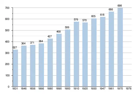 - Bronnen:NIS, Opm:1831 tot en met 1970=volkstellingen