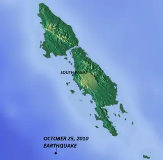 De aardbeving bij Sumatra op 25 oktober 2010 gebeurde om 14:42:22 UTC. Het epicentrum lag voor de westkust van Zuid-Sumatra, nabij de Mentawai-eilanden Noord- en Zuid-Pagai.