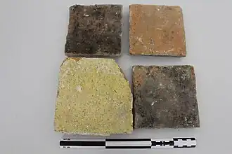 Restanten van bepleistering met erop beschilderde florale motieven -