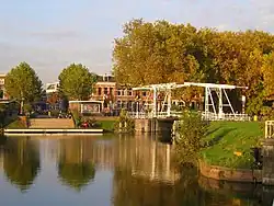 De Abel Tasmanbrug van 1906 met op de achtergrond het gebouw van de Rijks Munt