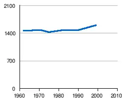 Onderstaande figuur toont het verloop van het inwonertal (bron: INSEE-tellingen).