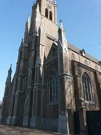 - Sint-Ceciliakerk te Veldhoven, met hoektorentjes, zeldzaam bij dit spitstype