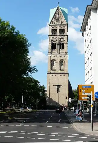 - Rozenkranskerk in Bad Neuenahr (de hoofdtoren van het Neoromaanse bouwwerk)