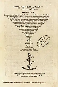 - ↑ Adagia quaecumque ad hanc diem exierunt (Erasmus, Paulus Manutius, apud Hieronymum Polum, 1578, p. 519)