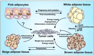 - ↑ Corrêa, L.H.; Heyn, G.S.; Magalhaes, K.G. The Impact of the Adipose Organ Plasticity on Inflammation and Cancer Progression. Cells 2019, 8, 662. https://doi.org/10.3390/cells8070662