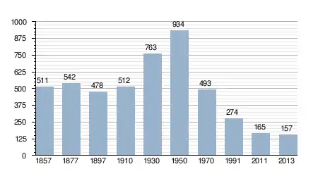 - Bron: INE, 1857-2011: volkstellingen
