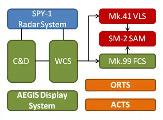 Het Aegis Combat System (ACS) bestaat uit het Aegon Weapon System (AWS), het Phalanx-Close In Weapon System (CIWS) en het Mark 41 Vertical Launch System (MK 41 VLS). Het bevat een gesofisticeerd detectie- en volgsysteem. De radar is van het type multifunctionele, driedimensionale, elektronisch gescande radar met phase array-technologie. Hij heeft een vermogen van 6 Megawatt en kan gelijktijdig meer dan 100 doelen detecteren en volgen, terwijl hij ook nog de raketten bestuurt. Dit tot op een afstand van 190 kilometer. Ter herinnering: het incident met Iran Air-vlucht 655 gebeurde onder controle van het Aegissysteem. Indien de bemanning van de USS Vincennes het systeem gevolgd had, was het incident niet gebeurd.