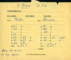 In wedstrijdpartijen moet veelal binnen een bepaalde denktijd een voorgeschreven aantal zetten worden voltooid. Men kan ervoor kiezen daarna nog door te spelen tot de speeltijd voor die dag voorbij is. Wie de partij toch eerder wil afbreken, krijgt al de die dag nog resterende tijd toegerekend. Is de speeltijd om, dan moet de speler die dan aan zet is een zet afgeven.