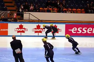 Er wordt gereden door meerdere teams van drie of vier rijders, die meestal lid zijn van dezelfde vereniging of (tijdens internationale wedstrijden) uit hetzelfde land komen. De teams zijn van elkaar te onderscheiden door verschillende kleuren helmcaps of schaatspakken. Tijdens een wedstrijd komen er meestal drie of vier teams in de baan. Wedstrijdafstanden zijn op internationaal niveau 5000 meter (45 rondes) voor de heren en 3000 meter (27 rondes) voor de dames.