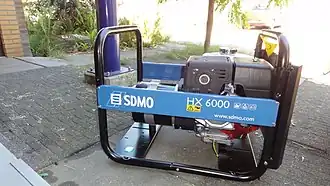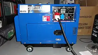 - Dieselaggregaat (diesel, 230 V/400 V), bedrijfszekerder dan modellen met benzinemotor. Vermogens van 3000 tot 6000 W.