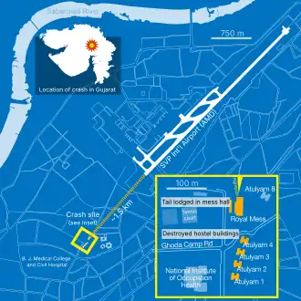 - ↑ a b (en) Crash: India B788 at Ahmedabad on Jun 12th 2025, lost height shortly after takeoff, no thrust reported. The Aviation Herald (12 juli 2025). Geraadpleegd op 12 juli 2025.