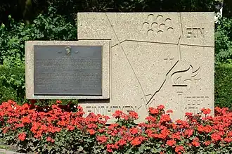 Links daarvan is een bronzen plaquette aangebracht. Een tweede plaquette ligt voor het monument.